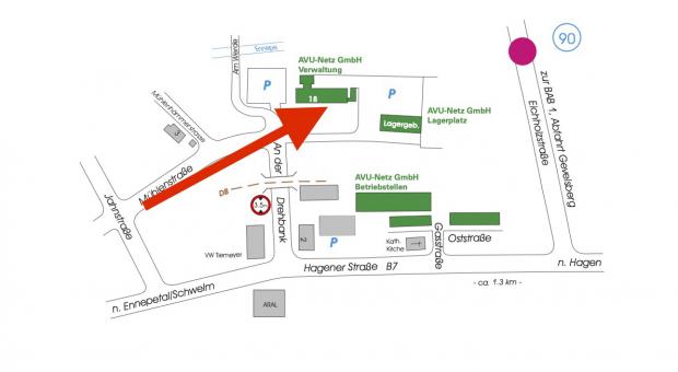 Von der B7, Hagener Straße, biegen Sie in Höhe des VW-Autohauses in die Straße An der Drehbank.