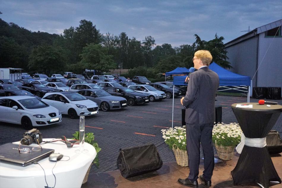 Wie bereits im letzten Jahr wird das Autokino wieder auf dem Parkplatz der AVU, An der Drehbank 18, aufgebaut. Aktuell beginnen die Filme um 19 Uhr. Wir zeigen die Filme auf einer LED-Wand (3x5 Meter) und haben Platz für ca. 40 - 50 Autos. Zudem gibt es eine Bühne mit LED-Leinwand für Tagesveranstaltungen. Der Ton wird per UKW-Frequenz direkt in die Autoradios übertragen. So können die Besucher kontaktlos an Veranstaltungen teilnehmen und gleichzeitig die Infektionsregeln einhalten. Ergänzt wird das Autokino um einen Open Air Kino Bereich: So können unsere Gäste entscheiden, ob sie bei guten Wetter die Veranstaltung lieber auf Stühlen im Open Air Bereich erleben möchten. Achtung: Gäste, die im Open Air Bereich sitzen möchten, brauchen einen negativen Test oder müssen geimpft/genesen sein. Bitte entsprechende Bescheinigungen mitbringen.